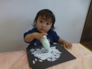 製作中です!!上手にポンポン!なにを作っているのかな?