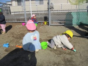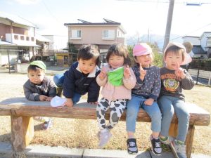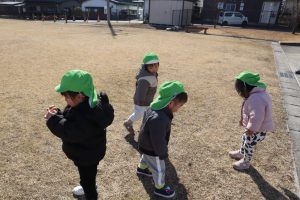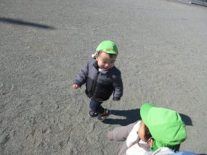 少し風もありましたが、みんなでおいかっけこをして体もポカポカ♪お友だちと一緒に走ることに楽しさを感じたり、鬼に捕まらないように走ったりと、みんなそれぞれ楽しんでいました(●’◡’●)