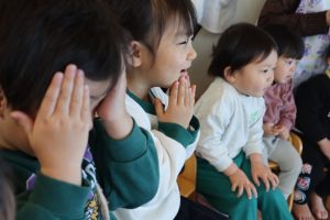 みんなが揃ったら、まずは手遊びからスタート!