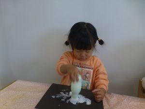 製作中です!!上手にポンポン!なにを作っているのかな?