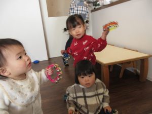 それぞれ好きな玩具を出して遊んだり、先生に絵本を読んでもらいました。