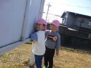 ベンチの裏に隠れる遊びも恒例に😄誰かが隠れるとどんどん人数が増えて、みんなで「ばぁ😜」と出てきました(*^▽^*)