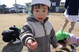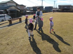 少し風もありましたが、みんなでおいかっけこをして体もポカポカ♪お友だちと一緒に走ることに楽しさを感じたり、鬼に捕まらないように走ったりと、みんなそれぞれ楽しんでいました(●’◡’●)
