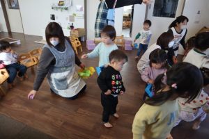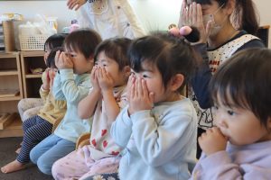 みんなが揃ったら、まずは手遊びからスタート!