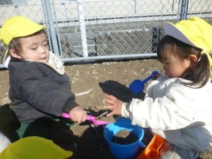 2歳児は隣の広場で遊びました。
