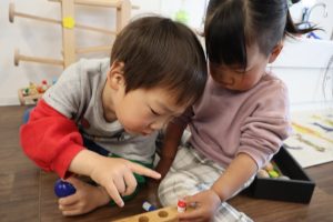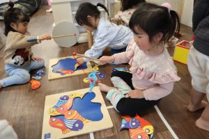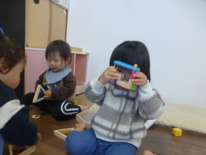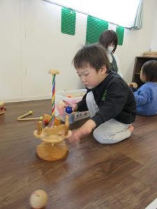 木のおもちゃ博物館様から木のおもちゃをたくさんお借りして遊んでいます😊♪