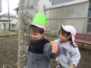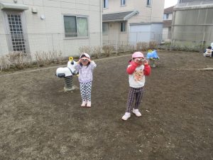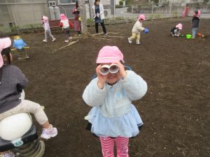 双眼鏡で公園内の散策をしたり、砂遊びをして遊びました!