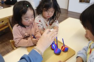 保育士からの問いかけに大きな声で答える姿も見られました😊