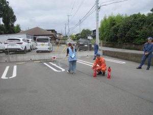今日は御殿場消防署から消防士さんが来て下さり、お話を聞いたり、先生も消火訓練を行ったりしました。