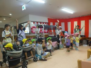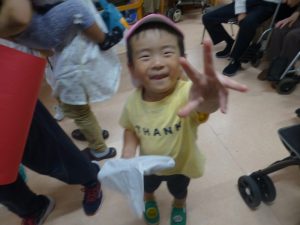 ダンスを披露したり、お祝いの言葉を言ったり…2歳児クラスのトドラーズさんが代表して「いつまでも元気でいてね😊♪」と伝えてくれました。
