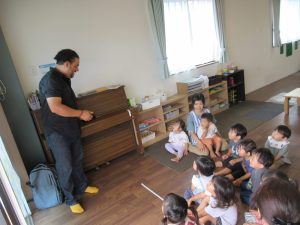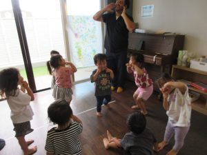 嬉しい、悲しい、空腹…等々様々な感情を一緒に表現したり、体操をしました♪先生がニコニコするとみんなもニコニコ😊♪みんなでやってみると楽しいね🎶