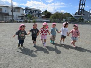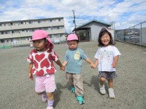 お友だちと手を繋いでいると、「いいな、いいな♬」「ぼくも入れて😊」と段々増えていきました(❁´◡`❁)