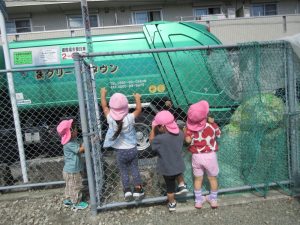 砂遊びをしたり、ゴミ収集車の様子を見たり…働く車にはやっぱり釘付けです(●’◡’●)