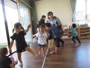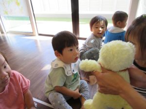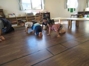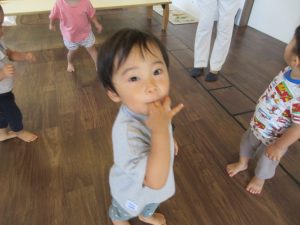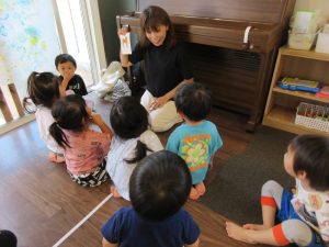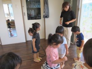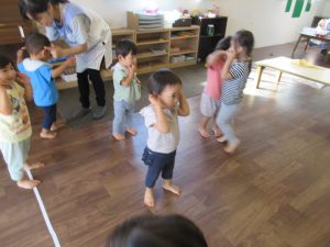 先生のまねっこをしてポーズをしたり、お歌を歌ったり♪