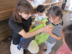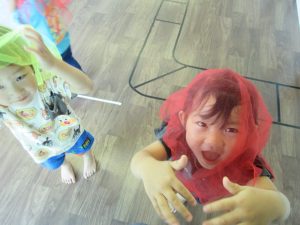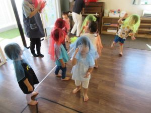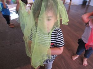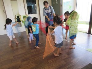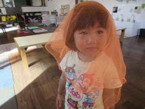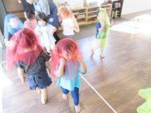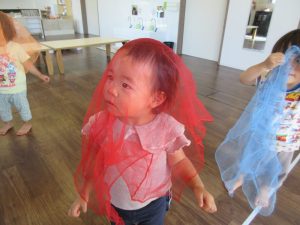 カラフルな布を使ってひらひらさせたり被って歩いてたりしました♪