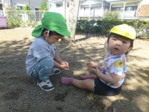 たくさん歩いていろんなものを見つけて観察したりお砂を触ったりして