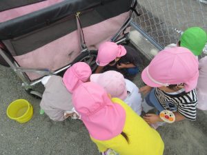 砂遊び、先生と一緒に鬼ごっこや追いかけっこをして遊びました🥰
