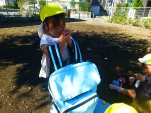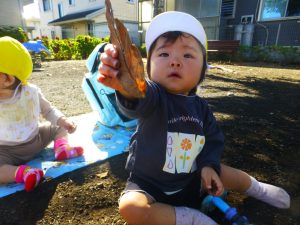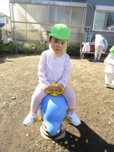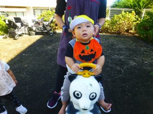 落ち葉を触ったり、スプリング遊具に乗って遊んだり重いリュックを持とうとしたりと思い思いに楽しんでいましたよ🎃