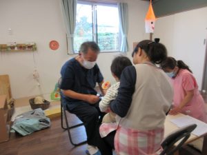 お医者さんの姿にびっくりして泣いてしまう子もいましたが
