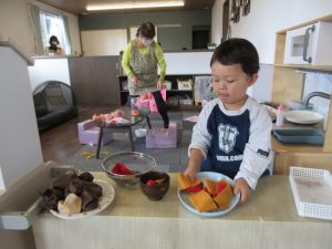 お店屋さんの格好をしてすぐにお料理を作ってくれました~💛