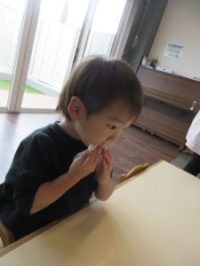食べ終わったあとはしっかり手や口を拭いていて、エプロンは