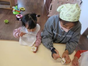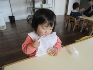 食べ終わったあとはしっかり手や口を拭いていて、エプロンは