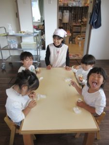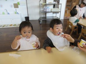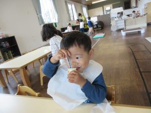 今日はヨーグルト🥄口の周りはおひげだらけ😃
