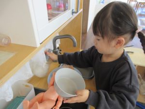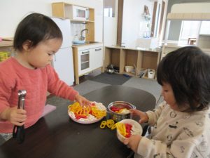 室内遊びは猫に変身してみたり、ブロックやおままごとなど、それぞれ好きな遊びを楽しんでいます♪