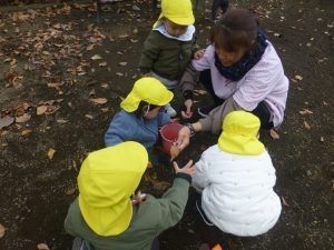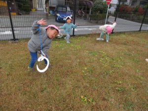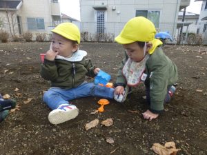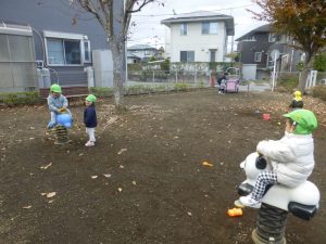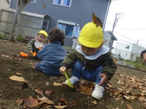 大好きな動く遊具で遊んだり、砂遊びや落ち葉を拾って楽しそうに遊んでいました♬