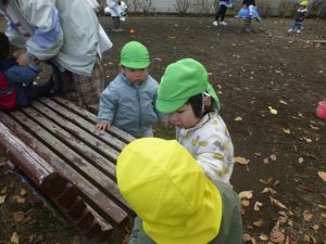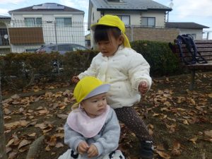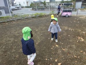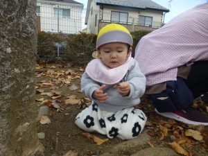 落ち葉を拾っておててで感触を楽しんだり、色々な場所でつかまり立ちをして公園を見渡したり寒さに負けず外遊びをして楽しんで来ました♪