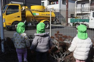 ゴミ収集車を発見!じーと観察していました👀