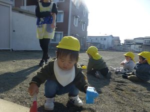 砂遊びや、ゆっくり先生の方に向かって歩く練習!!