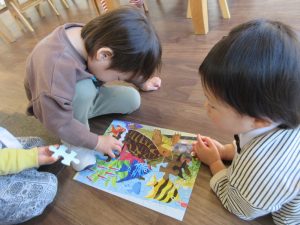 室内遊びでは仲良くパズルもしました✨