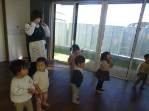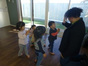 音楽に合わせて踊ったり、絵カードの表情を見て真似して楽しみました!