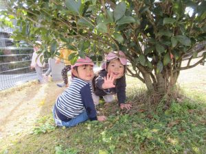 ベンチ裏や木の横に集まって、子どものだけの空間が!「どうしたの?」「なになに?」とお友だちと関わろうとする姿が可愛らしいですね😊♪