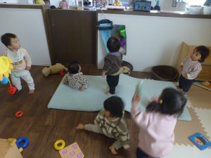 それぞれ好きな玩具を出して遊んだり、先生に絵本を読んでもらいました。
