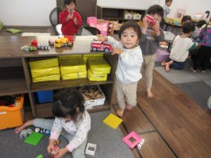 今日は、お天気が良くなかったのでお部屋の中で元気いっぱい遊びました✨