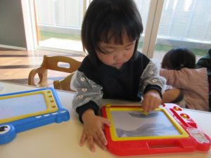 自分たちで好きな遊びを見つけ、お絵描きやブロック等、楽しんでいます✨