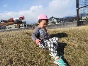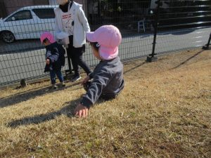 芝を滑り台のように滑ったり、芝の坂道をコロコロ転がったり楽しみました(^^♪