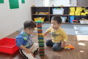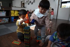 積み木を高く積み上げたり、お友だちと楽しく遊んでいます(*^^*)