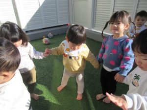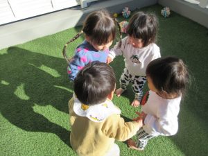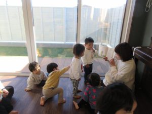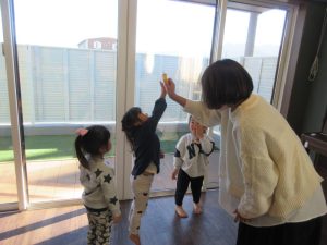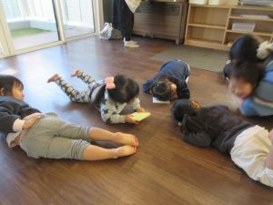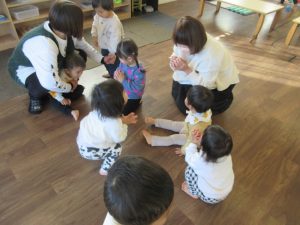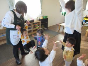 いろいろな動物になりきったりリズムに合わせて手を叩いたり