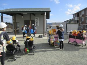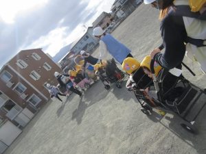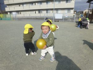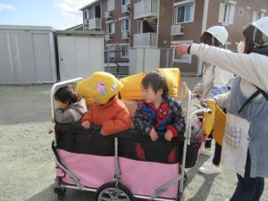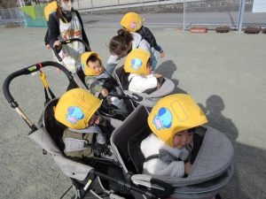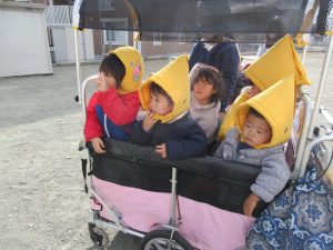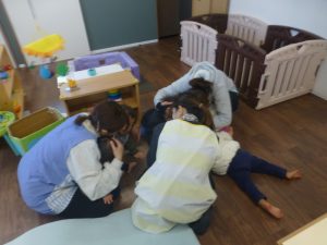 サイレンをきくと真ん中に集まってダンゴ虫ポーズ!