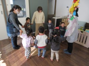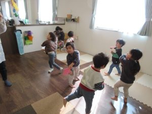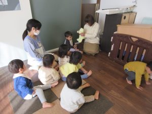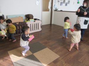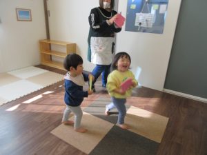 1歳児クラス、2歳児クラスはリトミックがありました。