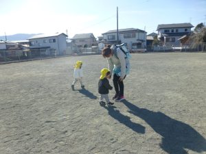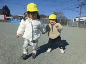 広場の中をあちこちお散歩していると、お友だち同士で仲良く手を繋いで歩く姿も見られました✨子ども同士の関わり合いがとっても微笑ましいです(❁´◡`❁)