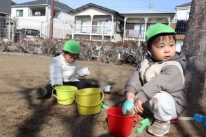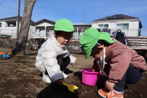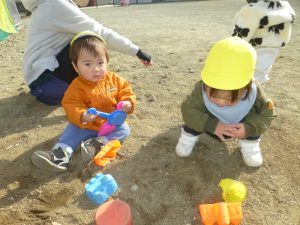 近くの広場で砂遊びや広場内を散策♪