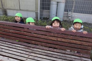 お友だちとベンチの後ろに隠れて、、、ばぁ!!