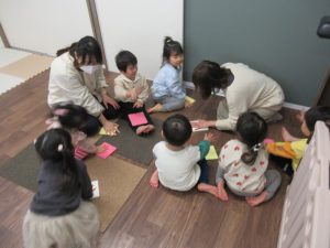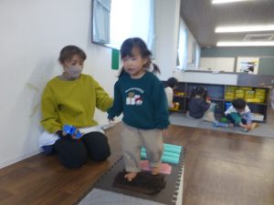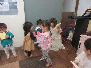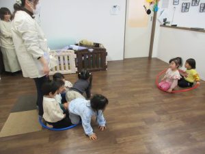フープやカラーボードを使って体を動かしました(*^▽^*)