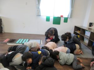 防犯ブザーが鳴るとダンゴムシのポーズ!ばっちり出来ていましたよ✨
