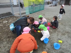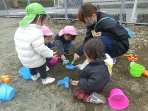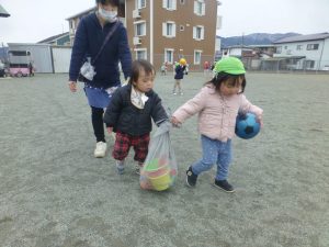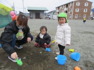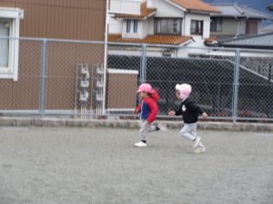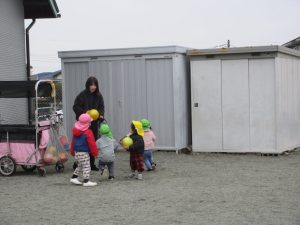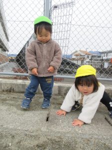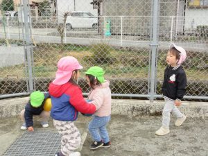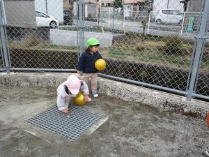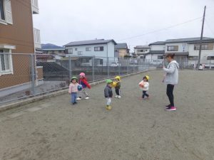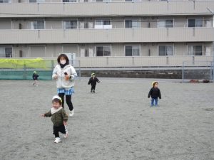 避難訓練の後は広場で遊びました。