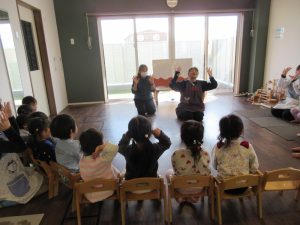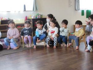 パネルシアターを集中してみる子どもたち🎶